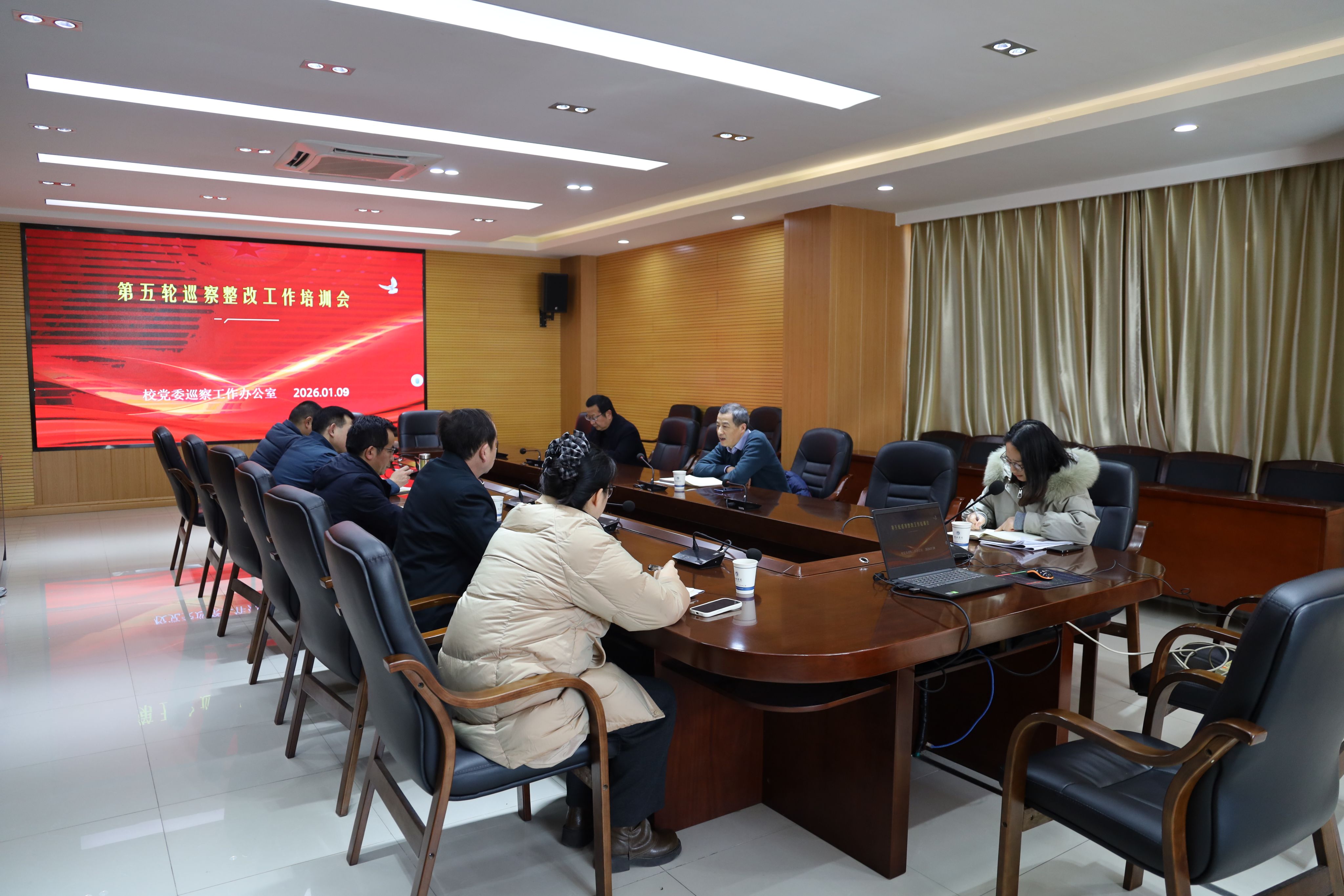 1月9日下午,党委巡察办组织开展三届校党委第五轮巡察整改工作培训会。校党委委员、纪委书记、监察专员朱为民出席会议并作讲话。第五轮巡察被巡察党组织领导班子成员、整改联络员,党委巡察办全体人员参加会议。会议由党委巡察办主任刘为国主持。